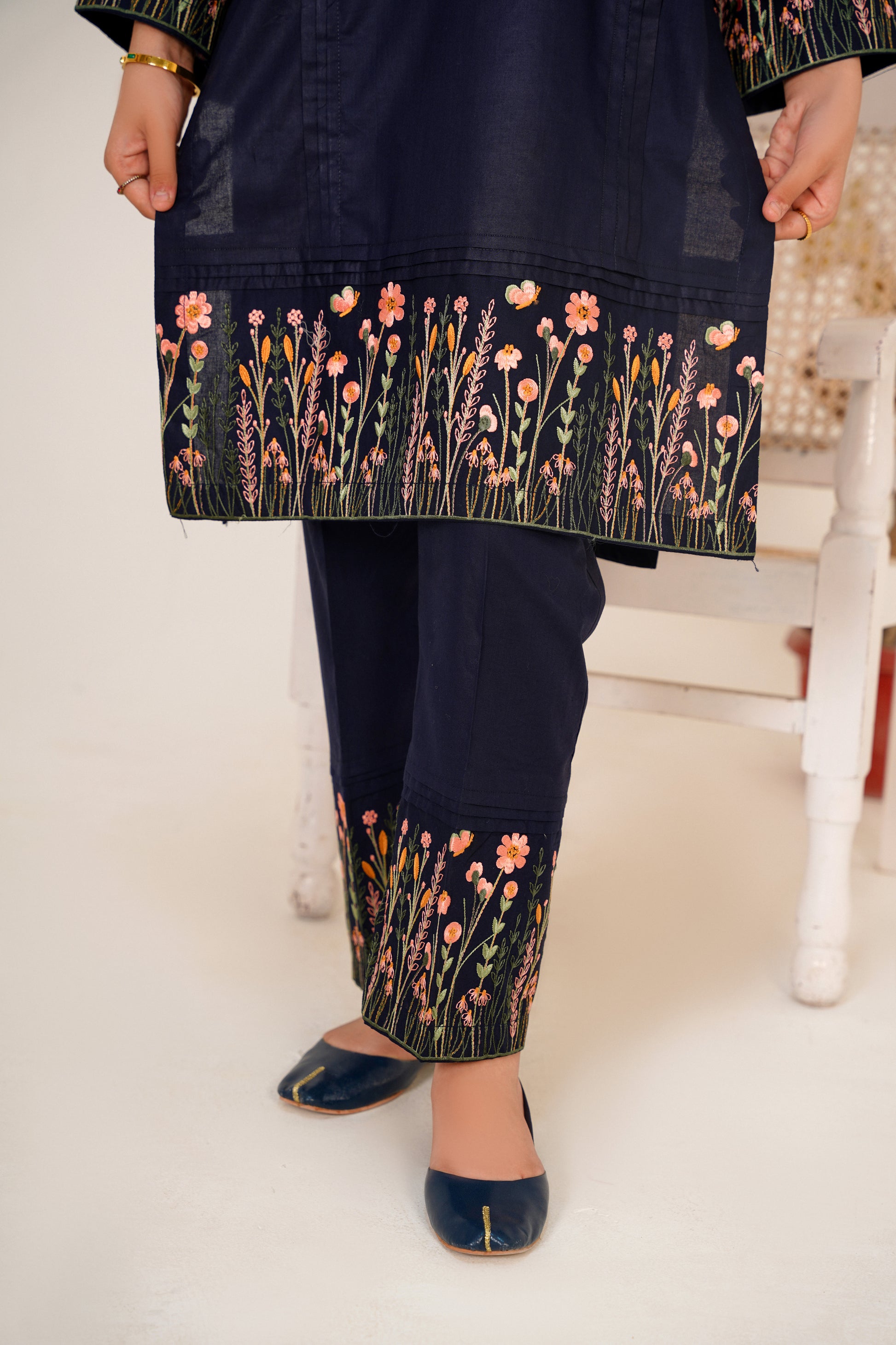 2 PIECE EMBROIDERED LAWN SUIT SINGLE BORDER NAVY BLUE 2102