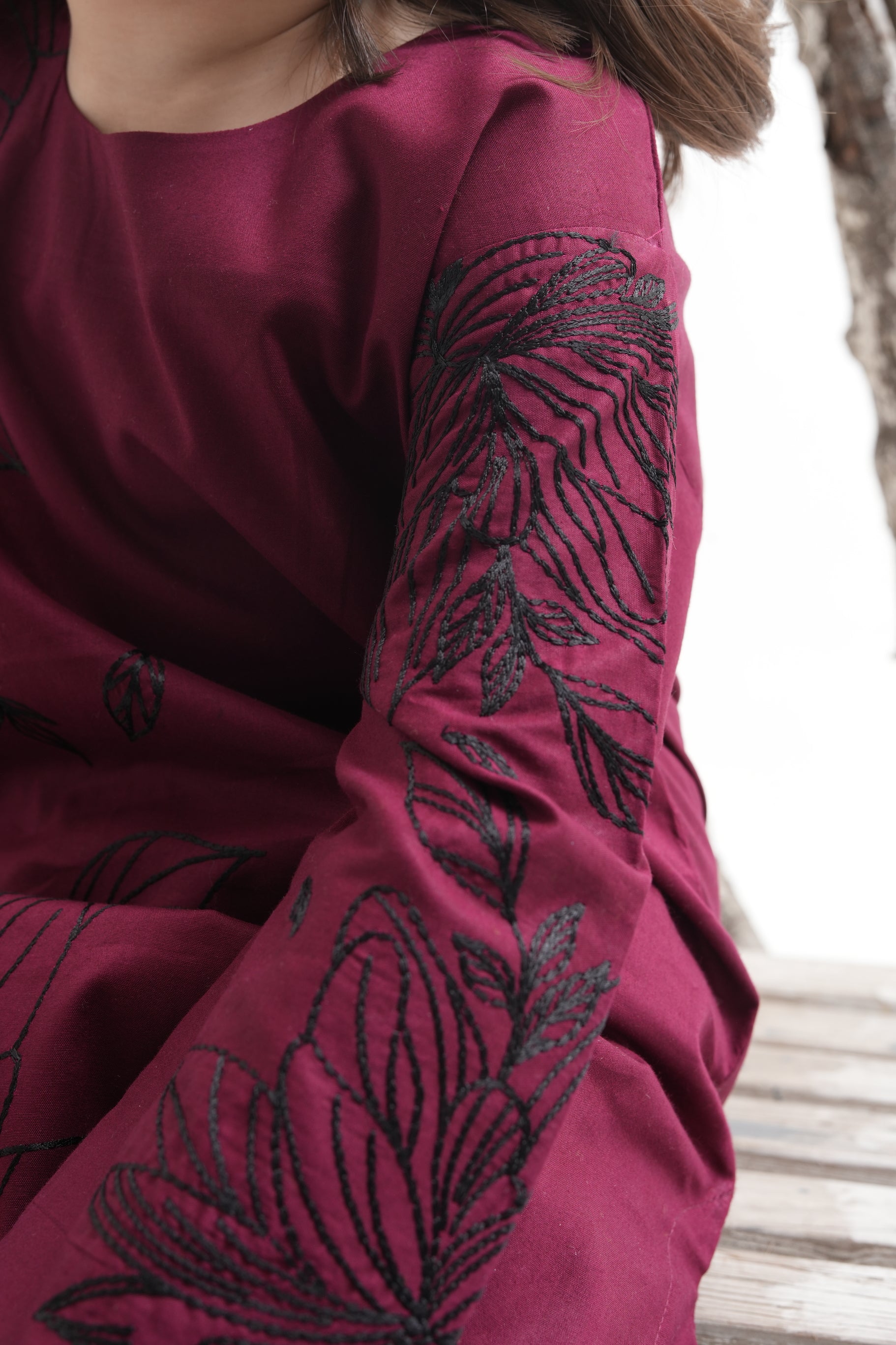 2 PIECE EMBROIDERED LAWN SUIT DARK MAROON KRS-1021