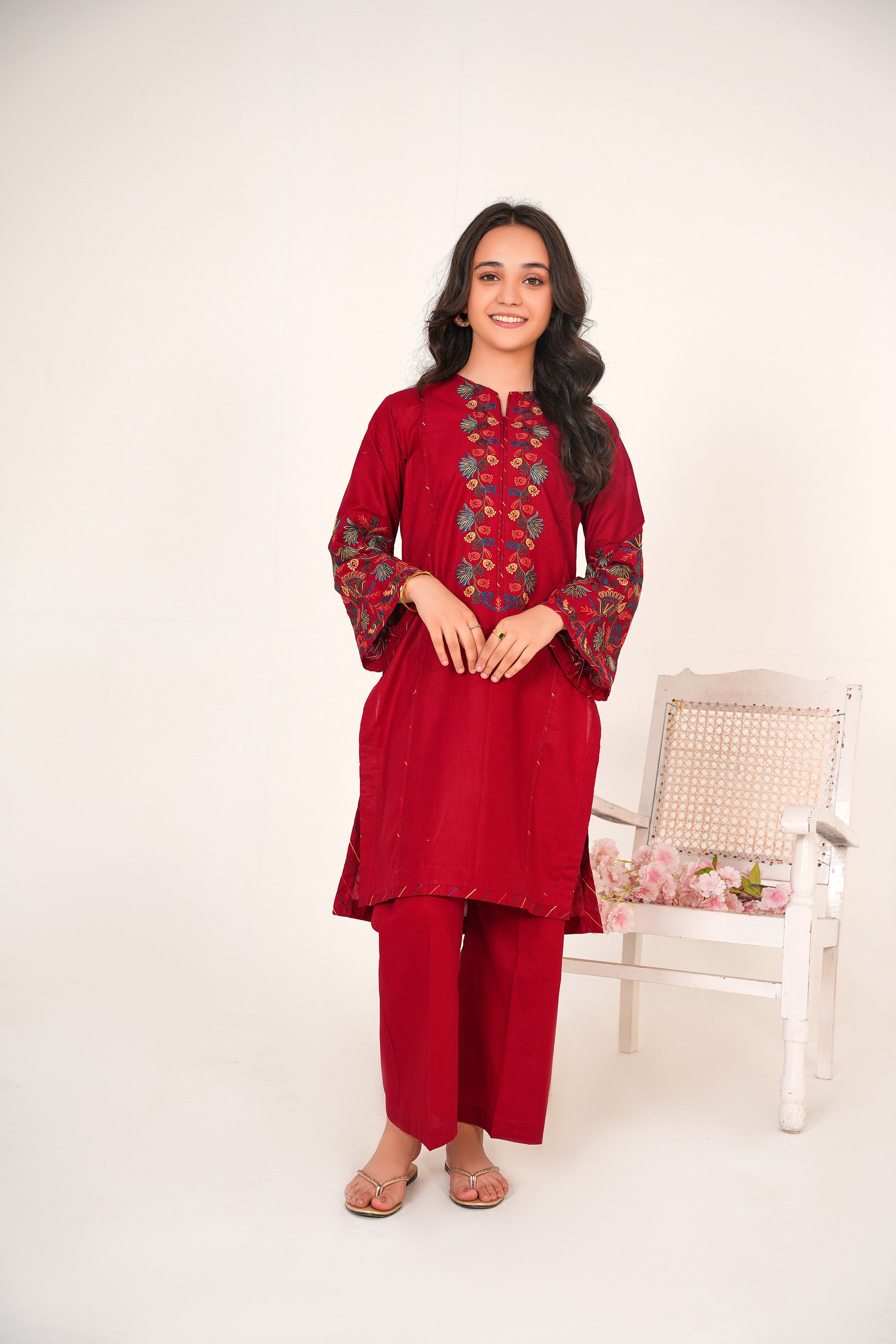 2 PIECE EMBROIDERED LAWN SUIT RED KDR 2108
