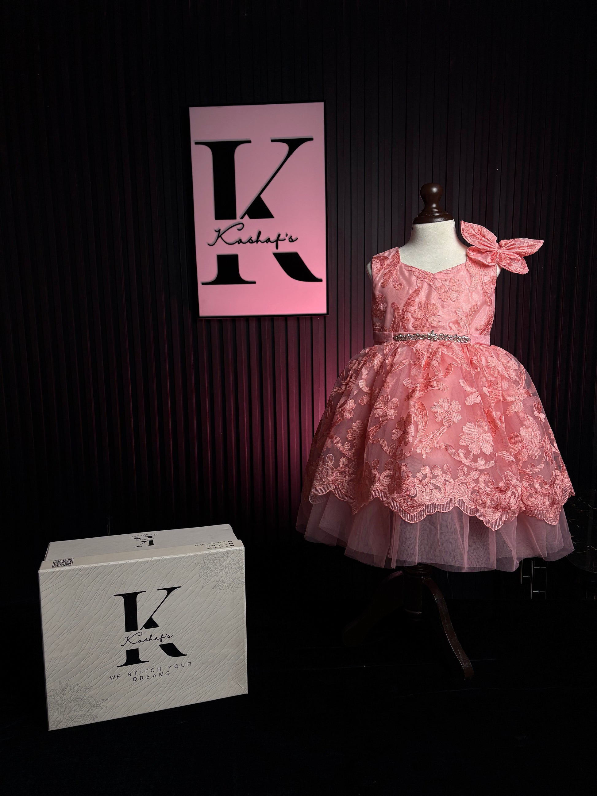 •Ravishing embroidery frock with clouding bottom net for styling western attire.•Featuring a hand made waist belt •Butterfly embroidered pattern head band adds a glorious essence to your look ,this dress must have for any wardrobe